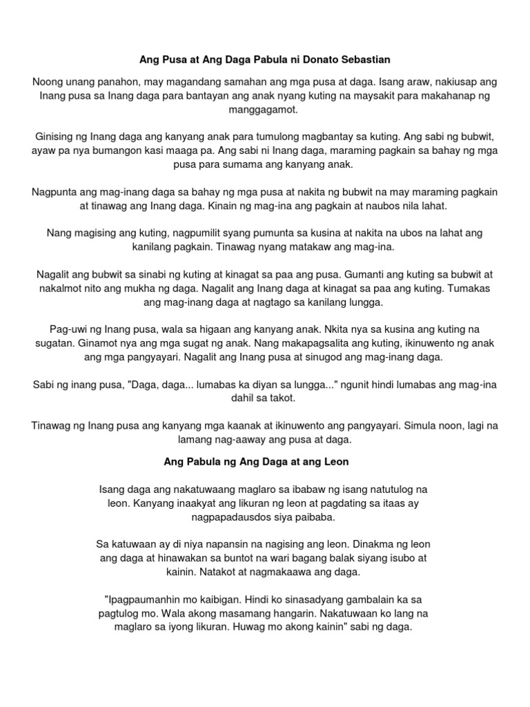 Ang Pusa At Ang Daga Pabula Ni Donato Sebastian Pdf